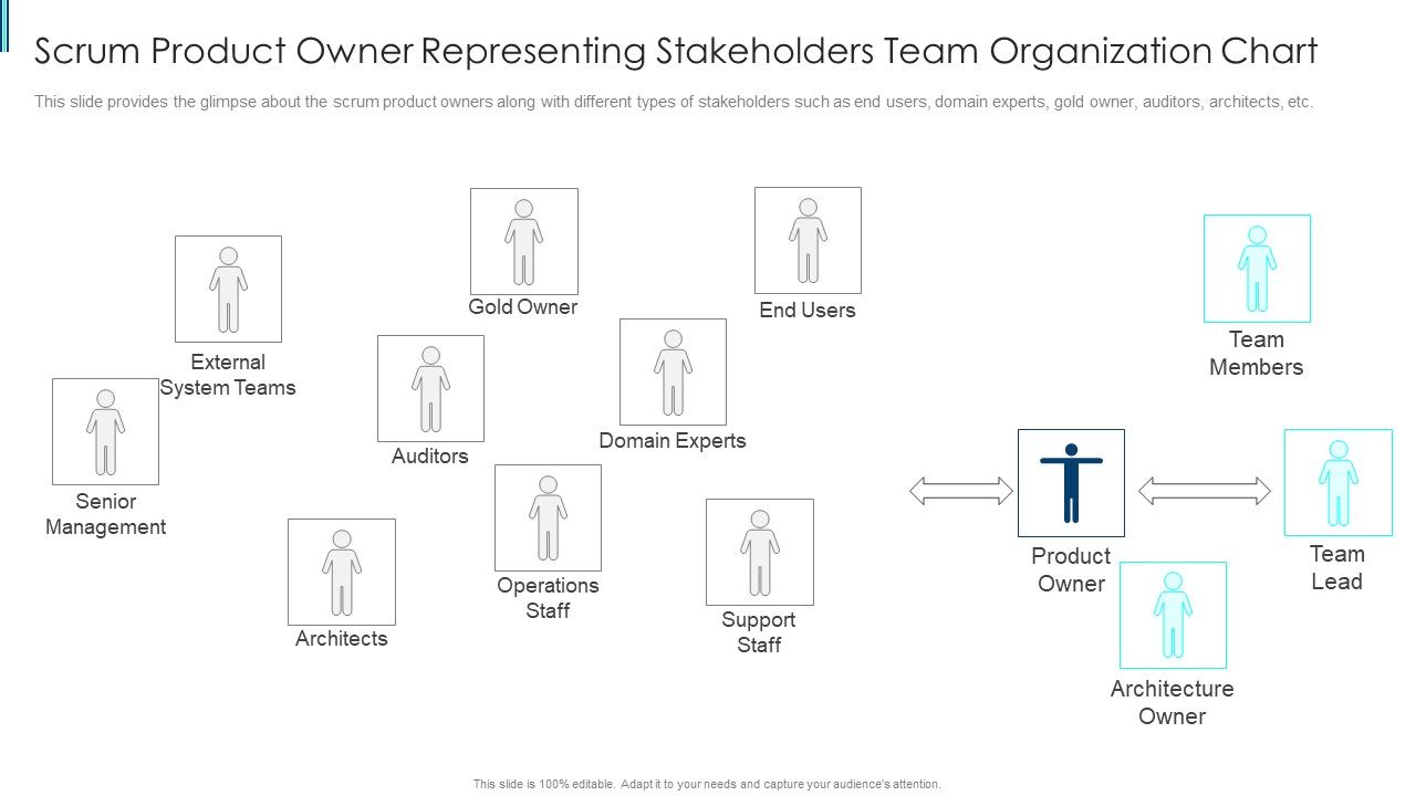 This is a scrum staff organization map it scrum product owner representing infographics pdf template with various stages. Focus and dispense information on one stages using this creative set, that comes with editable features. It contains large content boxes to add your information on topics like team members, product owner, architecture owner, operations staff. You can also showcase facts, figures, and other relevant content using this PPT layout. Grab it now.