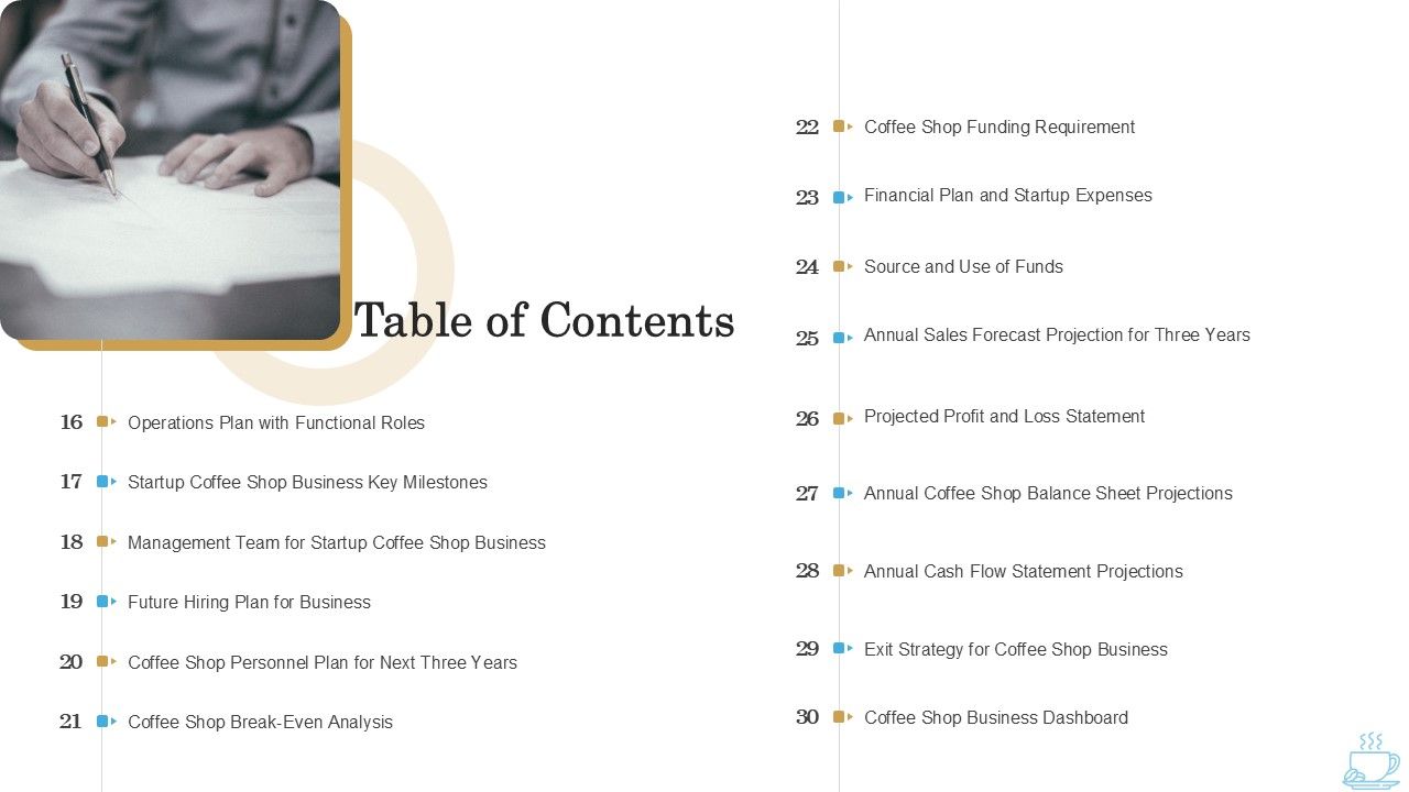 Table Of Contents Plan Business Plan For Opening A Coffeehouse Ppt Professional Graphics Tutorials PDF