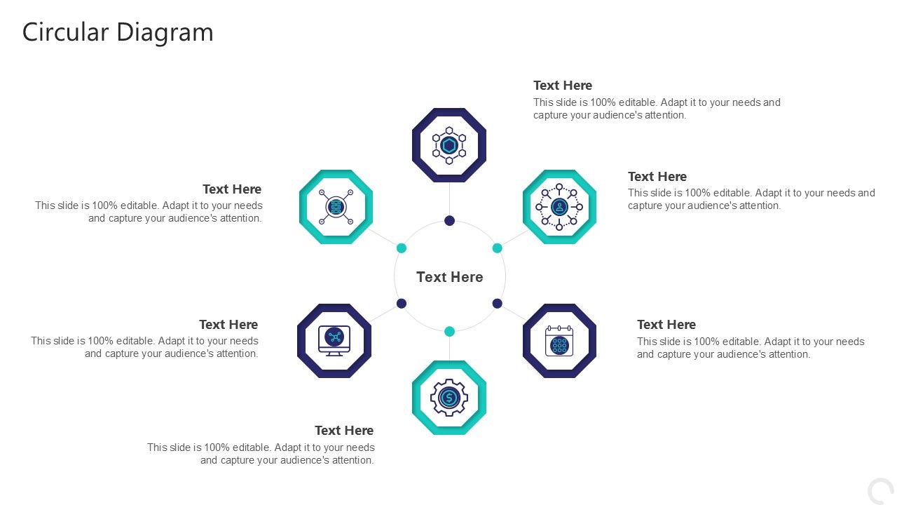 This is a techniques for project management scrum master it circular diagram topics pdf template with various stages. Focus and dispense information on six stages using this creative set, that comes with editable features. It contains large content boxes to add your information on topics like circular diagram. You can also showcase facts, figures, and other relevant content using this PPT layout. Grab it now.
