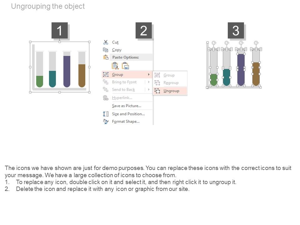 This PowerPoint template contains graphics of test tubes with percentage values. You may download this PPT slide design to display financial ratio analysis. You can easily customize this template to make it more unique as per your need.