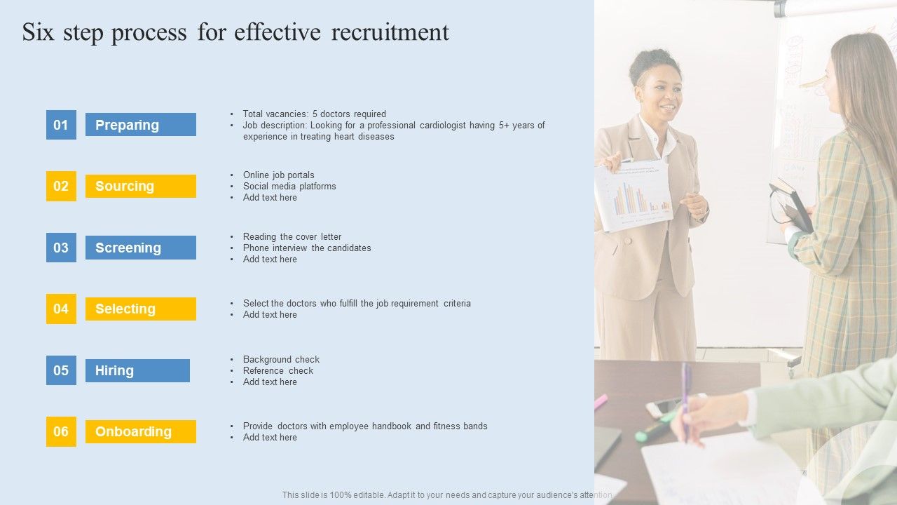 Slidegeeks is one of the best resources for PowerPoint templates. You can download easily and regulate Six Step Process For Effective Recruitment Clipart PDF for your personal presentations from our wonderful collection. A few clicks is all it takes to discover and get the most relevant and appropriate templates. Use our Templates to add a unique zing and appeal to your presentation and meetings. All the slides are easy to edit and you can use them even for advertisement purposes.