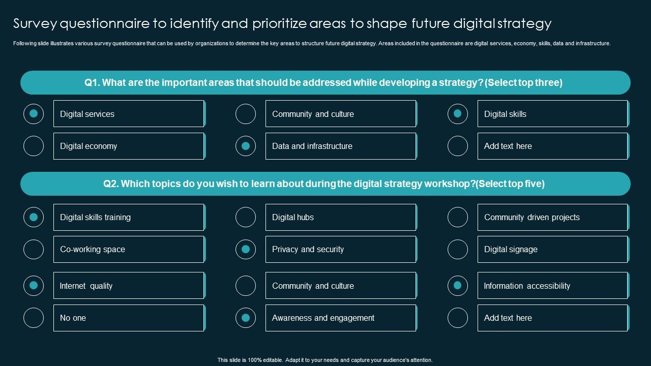Survey Questionnaire To Identify And Prioritize Areas To Shape Future Digital Strategy Clipart PDF