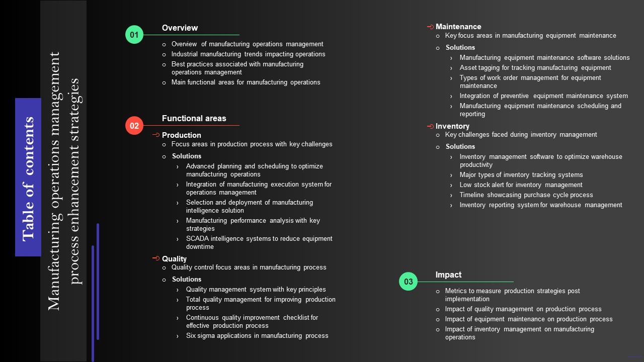 Table Of Contents Manufacturing Operations Management Process Enhancement Strategies Mockup PDF