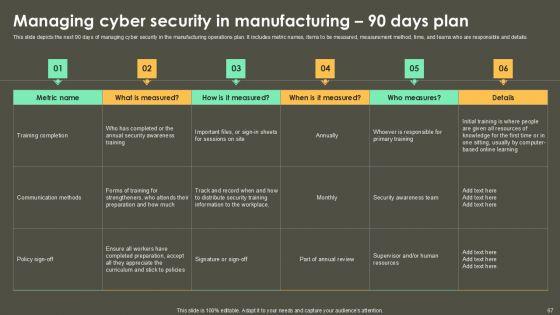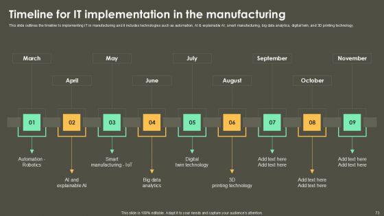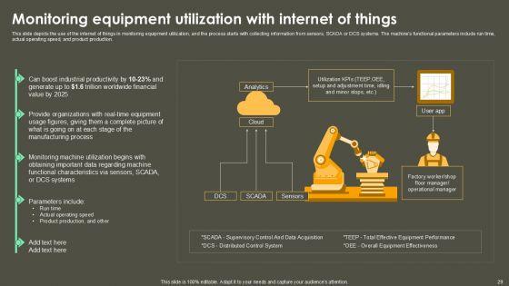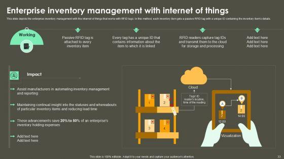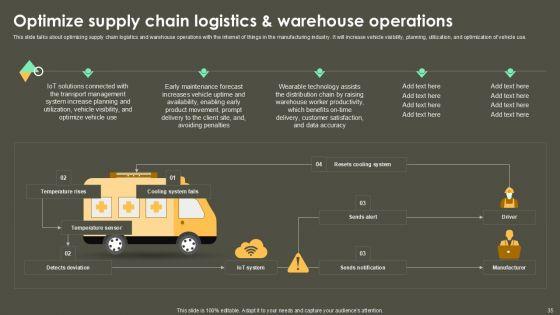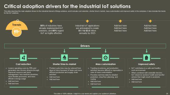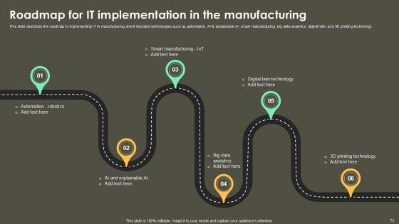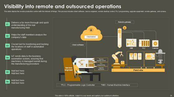 Incorporate this Iot Integration In Manufacturing Ppt PowerPoint Presentation Complete Deck With Slides to make your business idea and proposal stand out. This will also ensure that your proposal, in ninty three slides of this complete deck, is well-organized and professional. You can also add variables like market opportunity, value proposition, innovative solutions, and more for any business concern or issue that you might be facing. Download this design now. The 100 percent customizable nature of the template adds to the beauty of the entire concept of the off-the-shelf presentation concept that we have mastered.