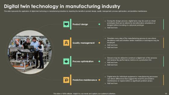 This slide represents the application of digital twin technology in manufacturing industries by depicting the benefits in product design, quality management, process optimization, and predictive maintenance. Find highly impressive Iot Integration In Manufacturing Digital Twin Technology In Manufacturing Industry Inspiration PDF on Slidegeeks to deliver a meaningful presentation. You can save an ample amount of time using these presentation templates. No need to worry to prepare everything from scratch because Slidegeeks experts have already done a huge research and work for you. You need to download Iot Integration In Manufacturing Digital Twin Technology In Manufacturing Industry Inspiration PDF for your upcoming presentation. All the presentation templates are 100 percent editable and you can change the color and personalize the content accordingly. Download now