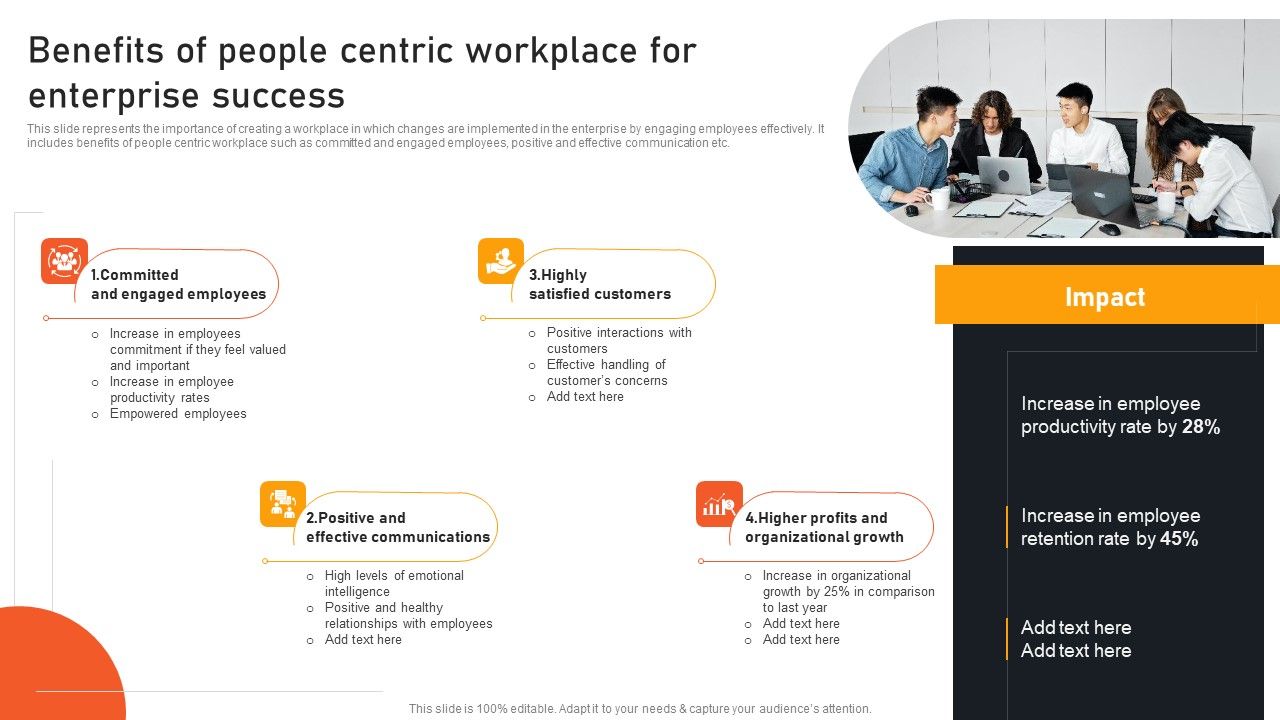 This slide represents the importance of creating a workplace in which changes are implemented in the enterprise by engaging employees effectively. It includes benefits of people centric workplace such as committed and engaged employees, positive and effective communication etc. Slidegeeks is one of the best resources for PowerPoint templates. You can download easily and regulate Transform Management Instruction Schedule Benefits Of People Centric Workplace Topics PDF for your personal presentations from our wonderful collection. A few clicks is all it takes to discover and get the most relevant and appropriate templates. Use our Templates to add a unique zing and appeal to your presentation and meetings. All the slides are easy to edit and you can use them even for advertisement purposes.