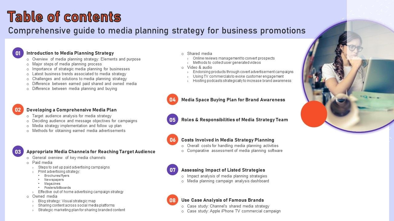 Table Of Contents Comprehensive Guide To Media Planning Strategy For Business Promotions Demonstration PDF