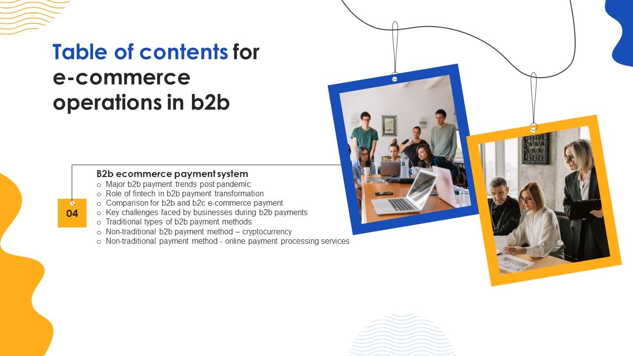 Find highly impressive Table Of Contents For E Commerce Operations Inspiration PDF on Slidegeeks to deliver a meaningful presentation. You can save an ample amount of time using these presentation templates. No need to worry to prepare everything from scratch because Slidegeeks experts have already done a huge research and work for you. You need to download Table Of Contents For E Commerce Operations Inspiration PDF for your upcoming presentation. All the presentation templates are 100 percent editable and you can change the color and personalize the content accordingly. Download now.