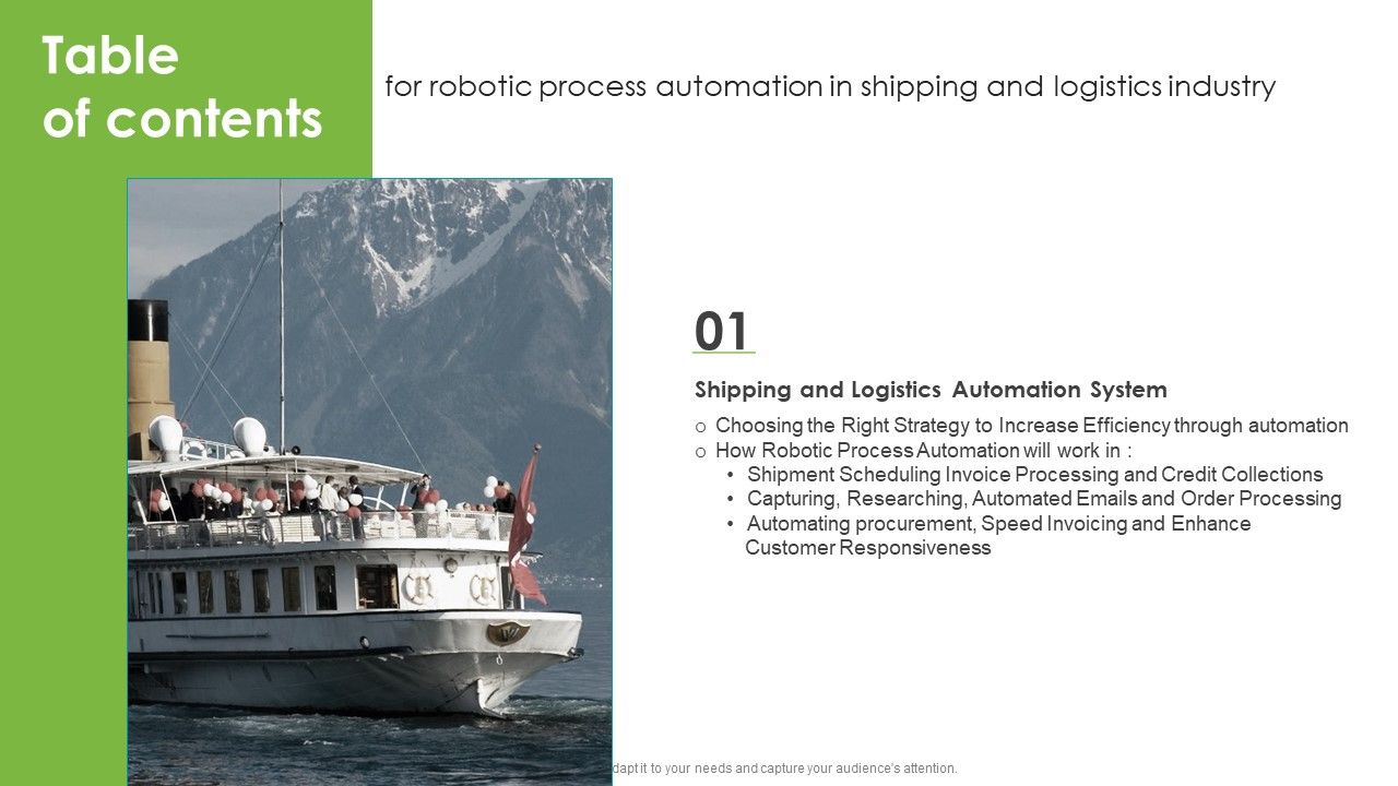 Table Of Contents For Robotic Process Automation In Shipping And Logistics Industry Structure PDF with all 1 slides: